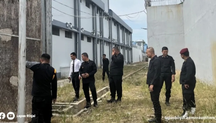 Ka. KPLP Lapas Binjai, Pariaman Saragih, bersama Kasi Adm & Kamtib, Serikat Sembiring, Kasubsi Keamanan, Samuel Silalahi, Kasubsi Pelaporan, Abdurrahman Sirait didampingi jajaran Pengamanan Lapas Kelas IIA Binjai melakukan kegiatan langkah percepatan deteksi dini.
