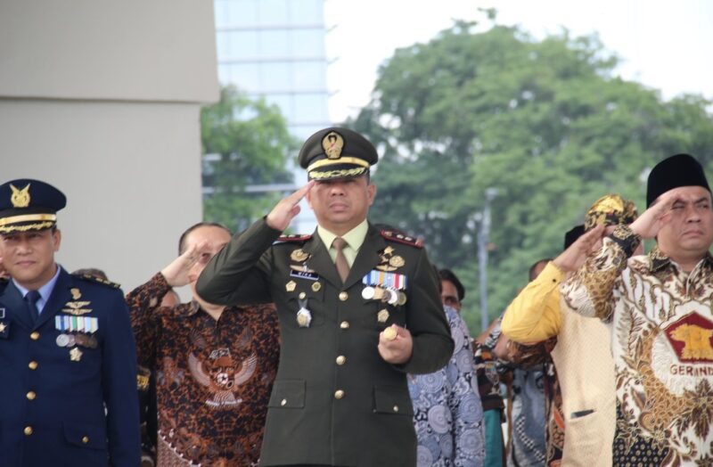Komandan Detasemen Polisi Militer (Dandenpom) I/5 Medan, Letkol CPM Hanri Wira Kusuma, S.H., M.Han., turut hadir dalam upacara bersama jajaran Forum Komunikasi Pimpinan Daerah (Forkopimda).