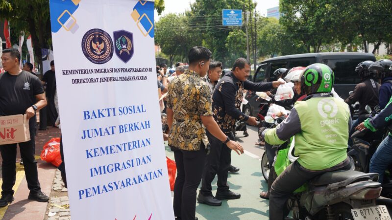 Direktorat Jenderal Pemasyarakatan (Ditjenpas) kembali menggelar kegiatan bakti sosial bertajuk “Jumat Berkah”, Jumat (29/8). Pada kesempatan ini, sebanyak 500 paket makan siang gratis dibagikan kepada masyarakat dan pengguna jalan di sekitar kantor Ditjenpas, sebagai wujud nyata kepedulian sosial sekaligus dukungan terhadap Program Hasil Terbaik Cepat (PHTC) Presiden Prabowo Subianto.