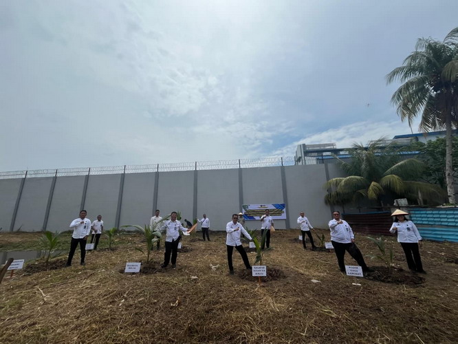 Lapas Binjai Gelar Penanaman Pohon Kelapa Serentak Bersama Menteri Imigrasi dan Pemasyarakatan Secara Virtual