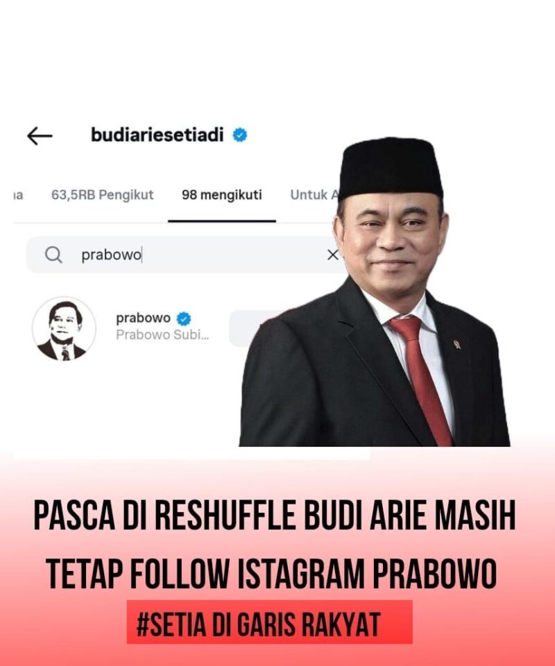 Bapak Budi Arie memiliki hubungan yang baik dengan banyak tokoh nasional lintas partai dan posisi politik, termasuk Bapak Prabowo. Disisi lain Mengikuti atau tidak mengikuti akun media sosial seseorang itu tidak serta-merta mencerminkan afiliasi politik ataupun sikap partisan.