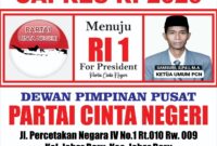 Jakarta | Sosok Pendiri sekaligus Ketua Umum Partai Cinta Negeri (Samsuri, S.Pd.I., M.A.) dideklarasikan sebagai Calon Presiden Republik Indonesia untuk Pemilihan Presiden (Pilpres) 2029…